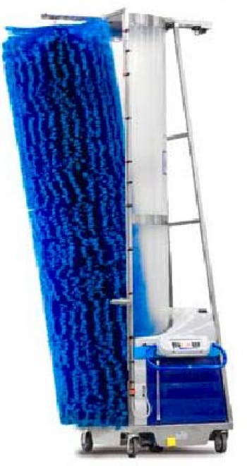 Portable wash brush using 24 volt drive system to travel around the vehicle to soap, brush, and rinse.